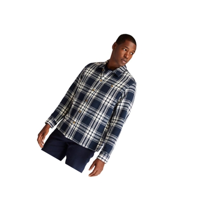 Camisas Timberland Heavy Herringbone-plaid Hombre Azul Marino | ES-CLABV93